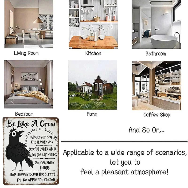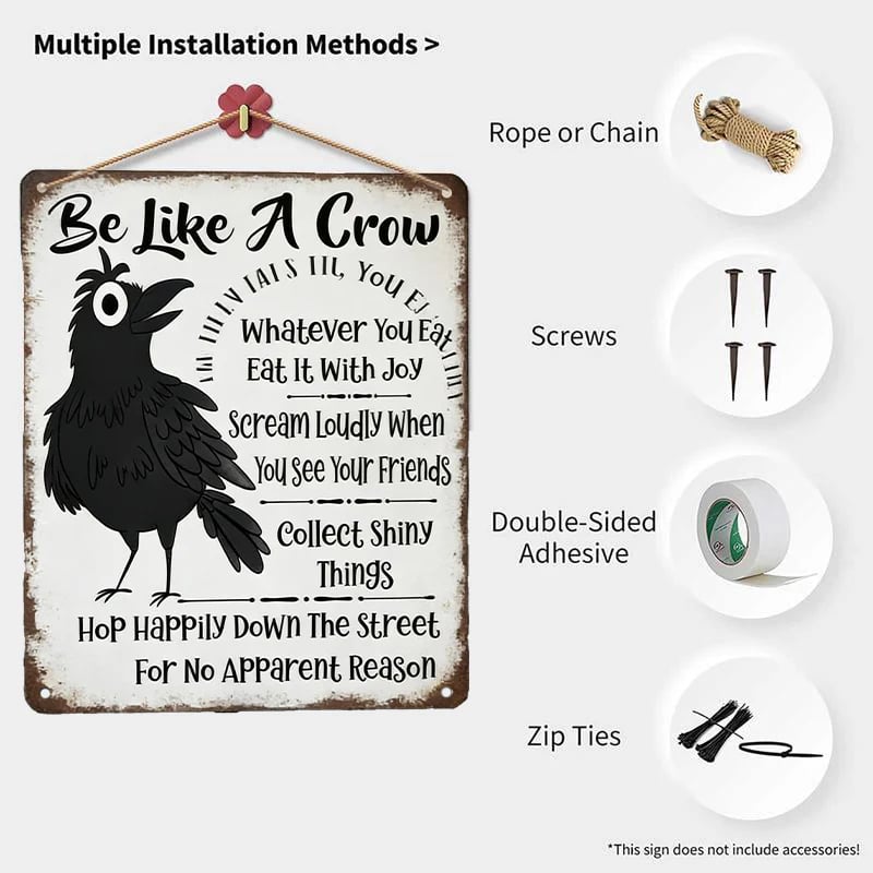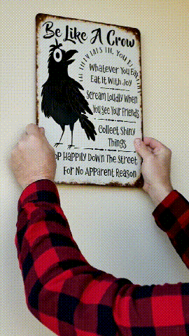 This “Be Like A Crow” vintage metal sign is a playful reminder to enjoy life the crow way.
